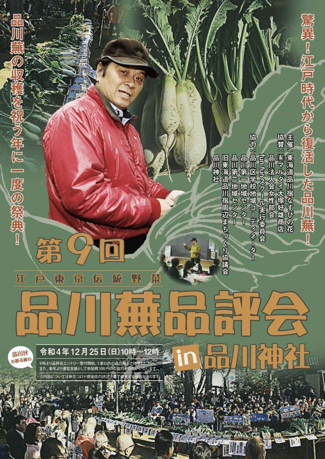 9回目を迎える今回は、すべてを一括で当日評価し、金賞・銀賞・銅賞・特別奨励賞を授与します。さらに、会場で振る舞っていた品川カブ入りの「品川汁」も3年ぶりに復活します。