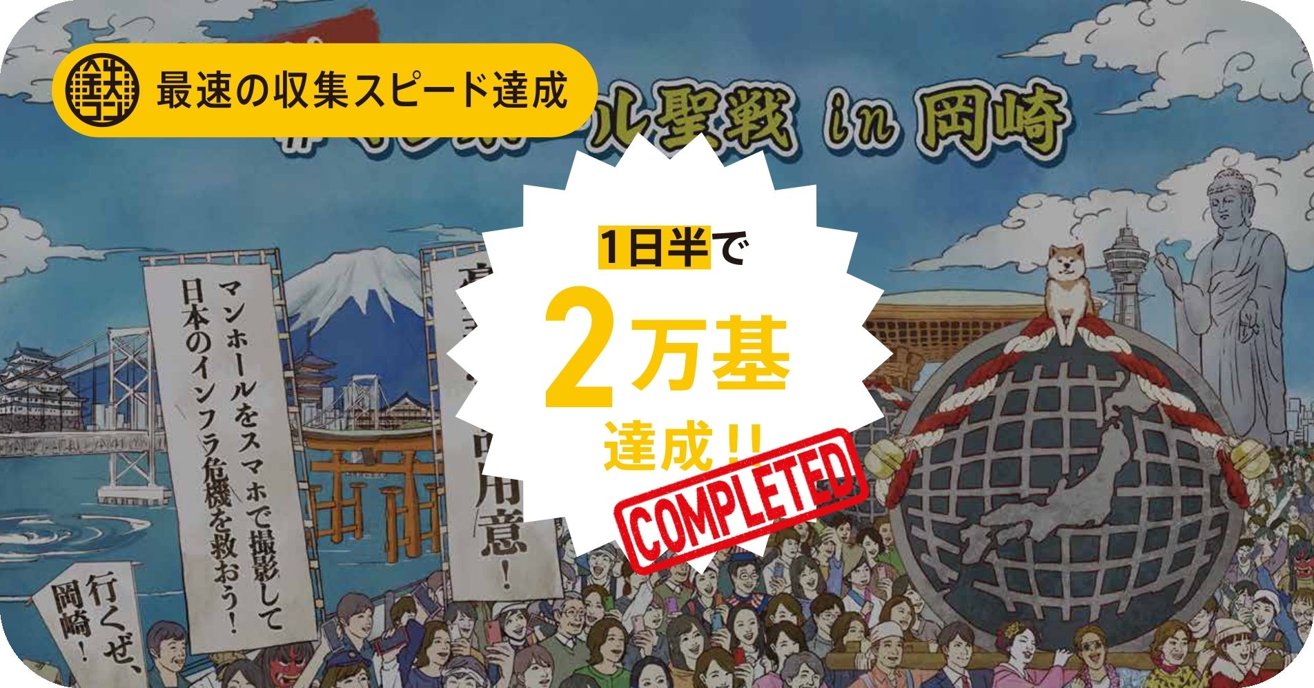 11月26日(土)、27日(日)に開催したイベント「マンホール聖戦in岡崎」では、延べ300名近くの方々にご参加いただき、結果として2日目の午前中に全ての対象マンホールデータが集まりました。「1日半で20,000基コンプ」は今まで開催したイベントの中で、最も早くデータが収集されたこととなります。