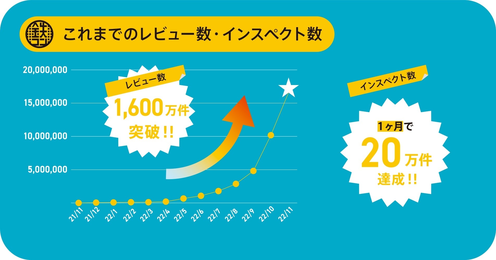 投稿・撮影以外のTEKKONのプレイ方法として、劣化状態を判断するレビュー、収集されたデータを再調査するインスペクトがあります。これにより、撮影・投稿されたデータを他のプレイヤーがチェックをすることとなり、さらにデータとしての信憑性・精度を高めていきます。レビューは1,000万件達成から1ヶ月もしないうちに、1,600万件を突破しました。