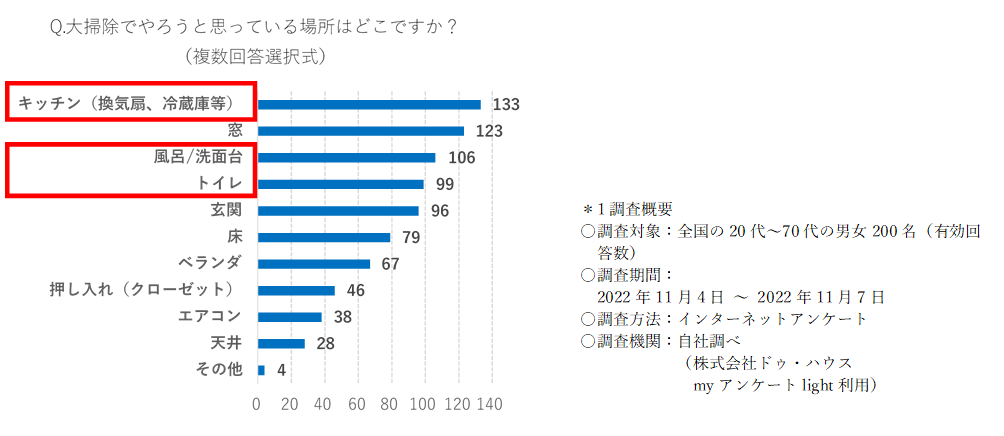 - 大掃除をしようと思う場所 1位「キッチン」&水回りが多い結果に