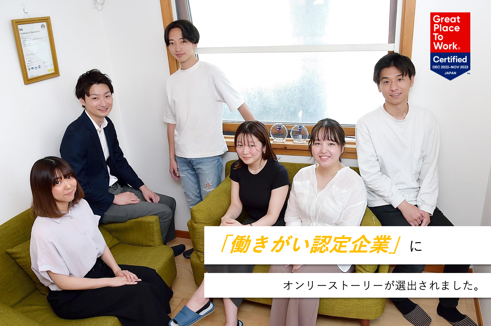 働く人へのアンケートの結果を基に、優れた職場文化に基づいた「働きがいのある会社」 であることをGreat Place to Work® Institute Japanが正式に認定するものです。