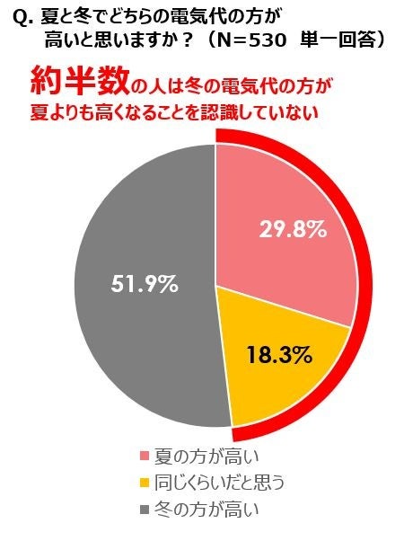 約半数の人は冬の電気代は夏以上に高くなる可能性を認識していない