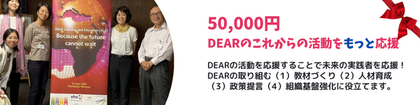 DEARの取り組む(1)教材づくり(2)人材育成(3)政策提言(4)組織基盤強化に役立てます。