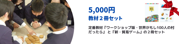 DEARの定番教材『ワークショップ版・世界がもし100人の村だったら』 と『新・貿易ゲーム』をセットにしてビギナーや若手にプレゼントするプログラムです。この世界の「多様性」と「貧富の差」を体験的に学ぶ人気のワークショップ教材です。