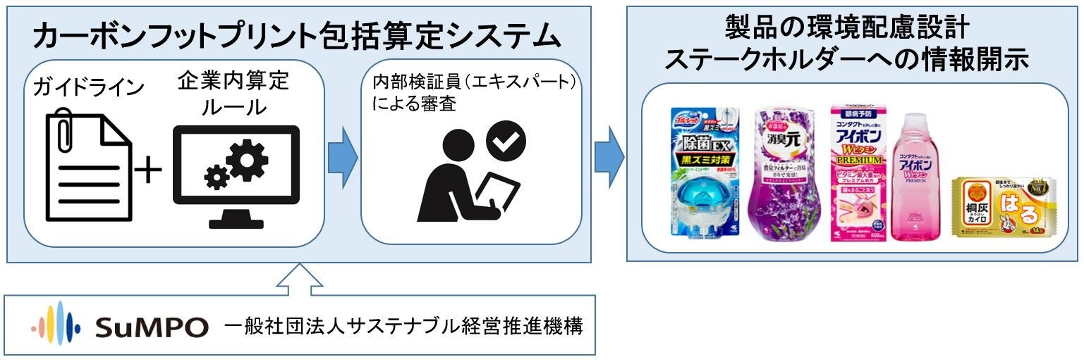 小林製薬株式会社(本社:大阪市、社長:小林章浩)は、「カーボンフットプリント包括算定システム(以下、本システム)」を構築し、一般社団法人サステナブル経営推進機構(以下、SuMPO:さんぽ)の「SuMPO/第三者認証型カーボンフットプリント包括算定制度(以下、本制度)」の認証を取得しました。本認証の取得は、日本で3社目であり一般消費財メーカーでは初めての取得となります。