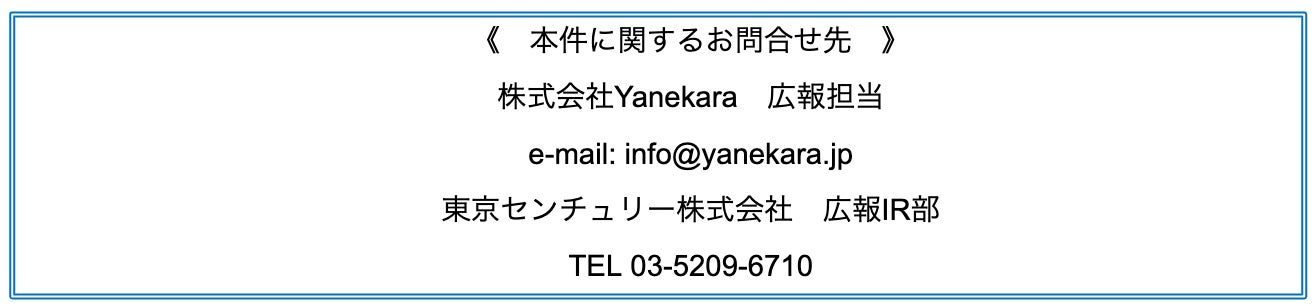 Yanekaraと東京センチュリーは、2022 年7月に業務提携契約を締結し、両社の強みを掛け合わせたモビリティサービス分野における協業について協議を加速してきました。今回の協業は、両社による業務提携契約の締結後、第一弾の取り組みとなります。
