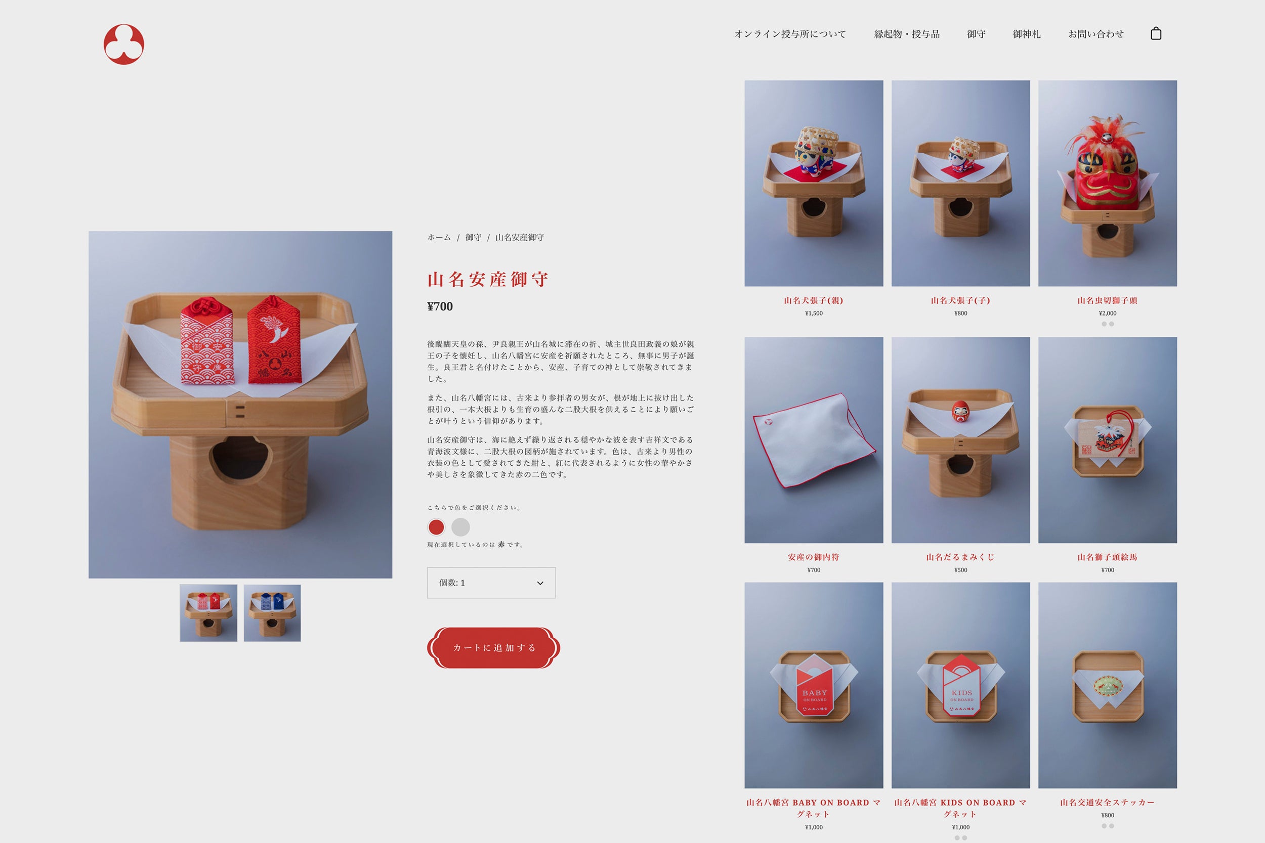 今回、発表された各種授与品は、山名八幡宮の授与所、もしくはオンライン授与所で授与いただけます。オンライン授与所は、コロナ禍でオンラインショップの需要が高まる中、パソコンやスマートフォン、タブレットなどを通じて、直接、神社で授与品を受けることなく、より多くの皆さまへ、山名八幡宮とのご縁を結ぶ、きっかけとなる場です。