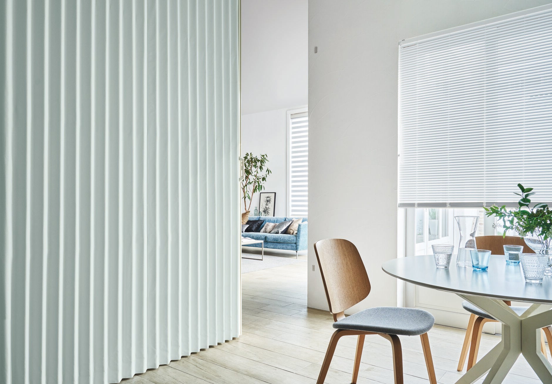 間仕切「アコーデオンカーテン」は、昨今のニーズやインテリアのトレンドを踏まえ、新柄3 柄12 アイテムと、従来からある柄に新たに3 アイテムをラインナップし、より幅広いシーンでお使いいただけるようリニューアルいたします。