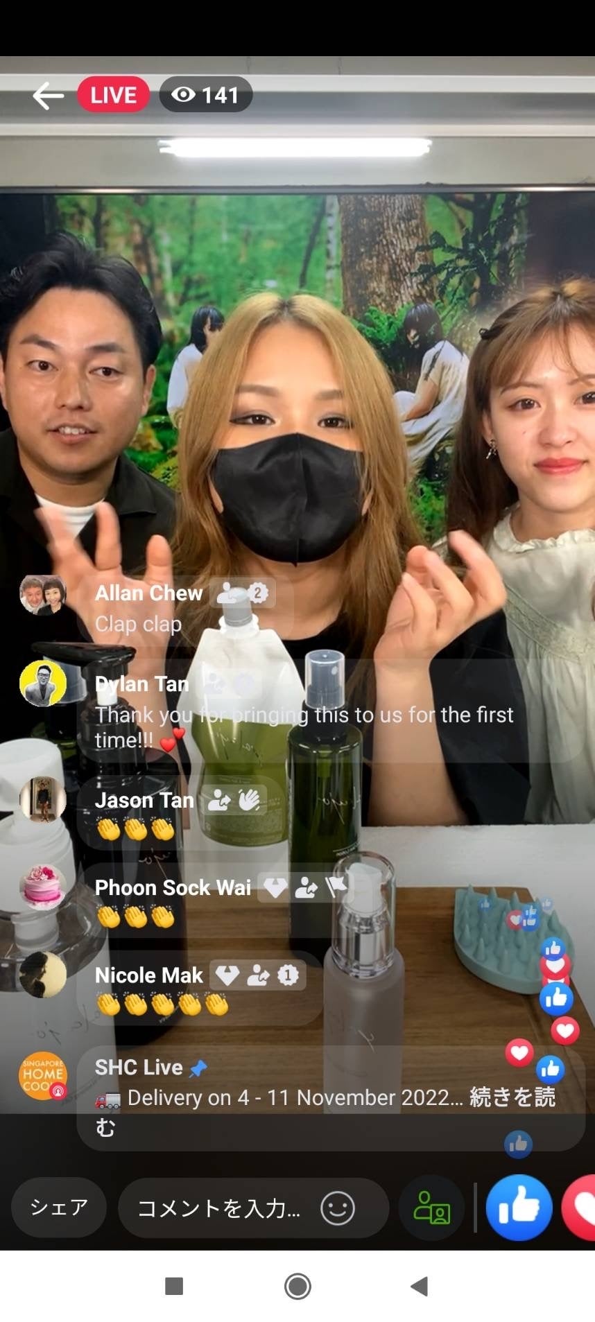第1回目となるシンガポールライブコマースは2022年10月20日21時〜23時(日本時間)の2時間行い400万超えの売り上げを上げました。