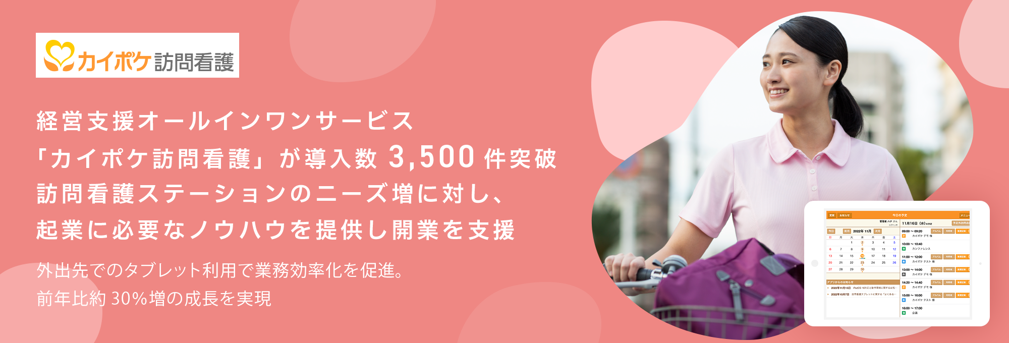 訪問看護ステーションに必要な業務効率化や開業支援などが評価され、2022年6月末時点で前年比約30%増となり、この度、12月1日に導入数が3,500件を突破しました。