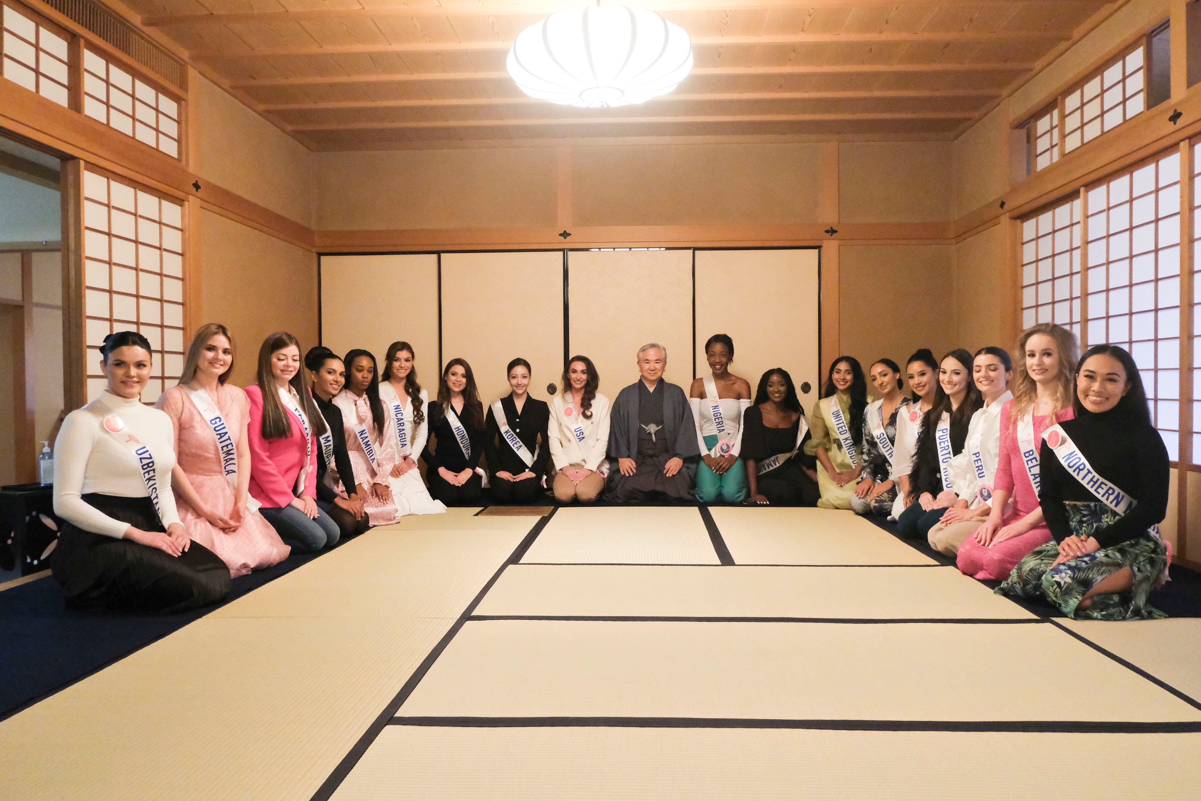 2022年12月05日(月)に『第60回ミス・インターナショナル世界大会2022』出場者38名は遠州茶道宗家(東京都新宿区若宮町)を訪問しました。