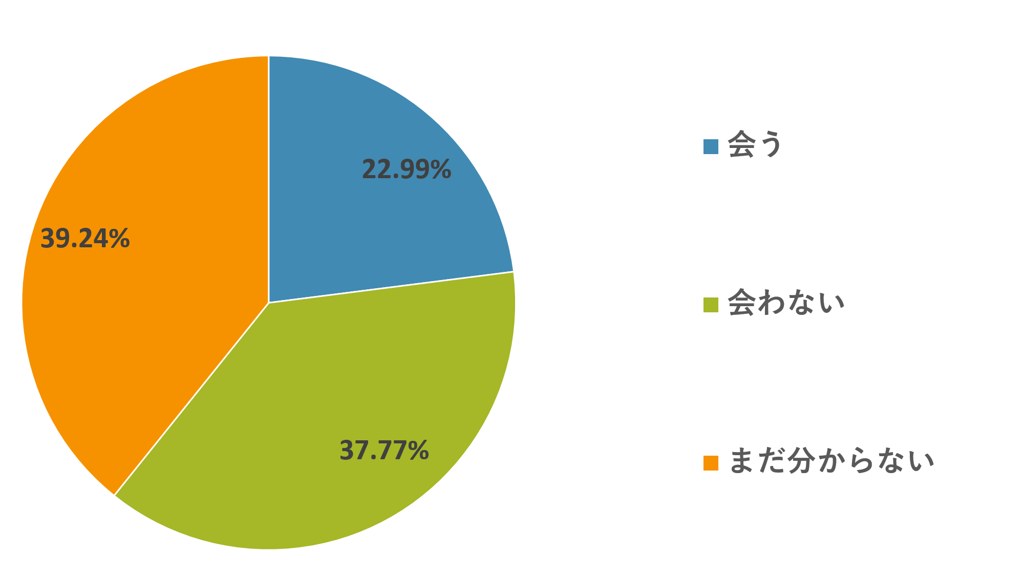 「今年の父の日は直接お父様とお会いされますか。」に対し、「会う 22.99%」「会わない 37.77%」「まだ分からない 39.24%」と回答。
