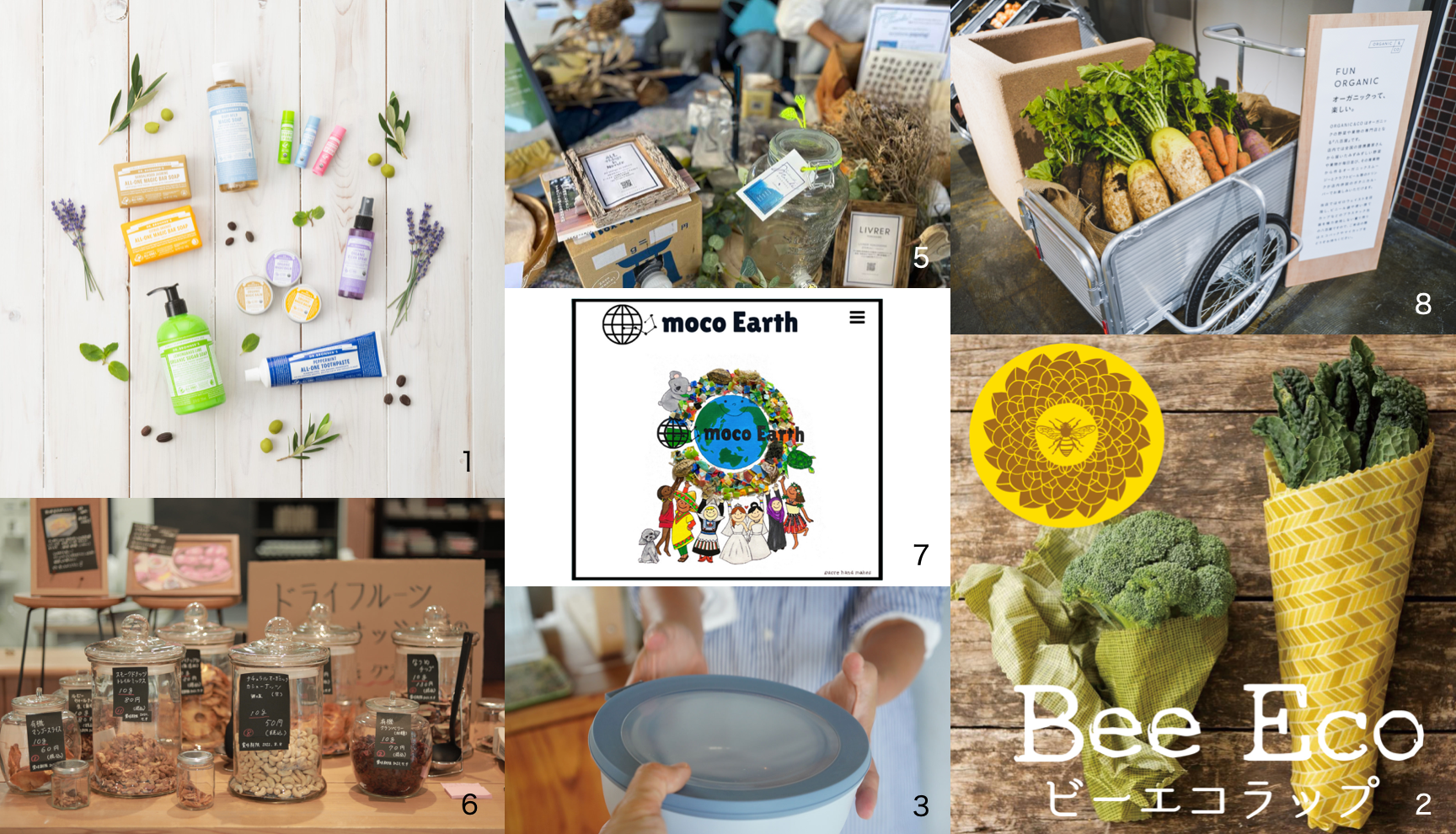 1948年より続くカリフォルニア発、天然由来成分100%のオーガニックソープメーカーである「ドクターブロナー」、エシカルな暮らしを楽しむ生活雑貨や食品を量り売り販売する「まちの駅⼋王⼦CHITOSEYA」、パッケージフリーで買えるマルシェ「KAMAKURA量り売りサステナマルシェ」など、地球に優しい取り組みを行いながら商品やサービスを提供する出店者をご紹介。