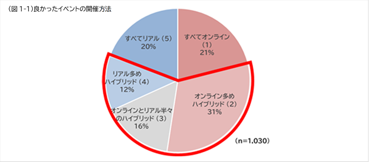 1-1.良かったイベントの約60%がオンラインとリアルのハイブリッド式