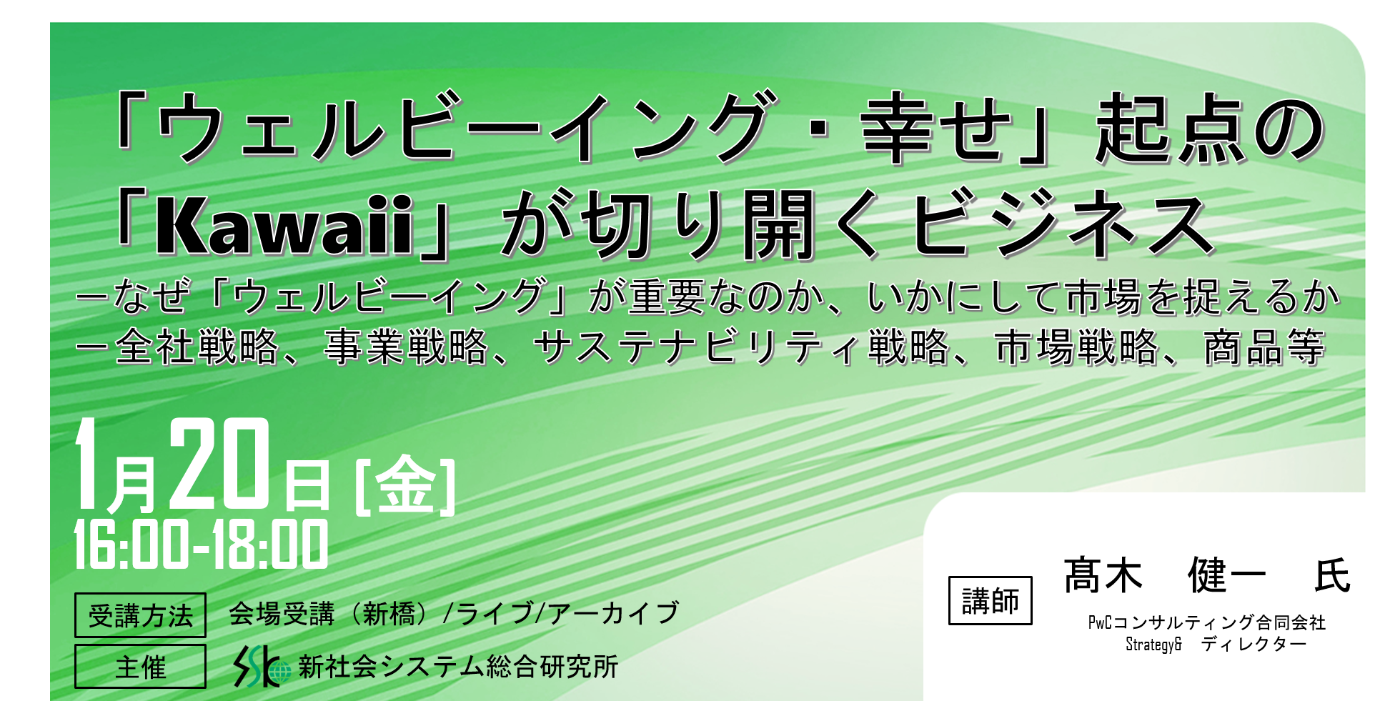 本講義では、「ウェルビーイング・幸せ」を企業経営に組み込む上での要諦を伝授すると同時に、そのための有力な切り口の1つである「Kawaii」についても論じる。