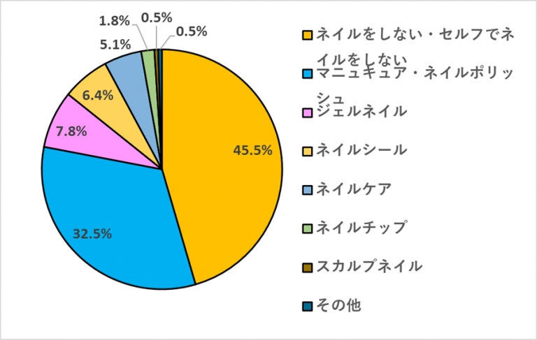 - セルフネイルは「マニュキュア・ネイルポリッシュ」が最多