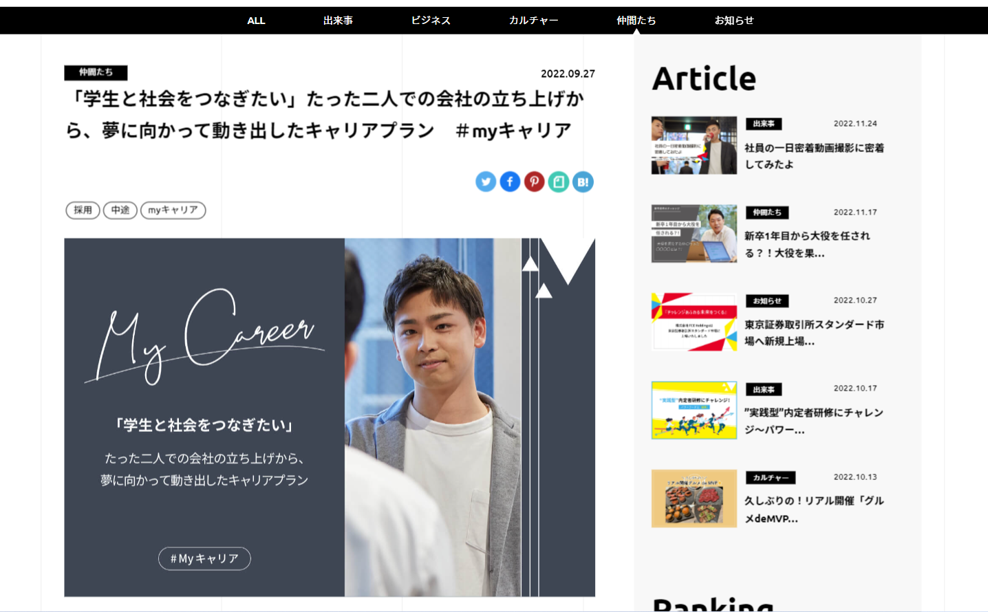 エネルギッシュで個性的!これが第一印象でした。欲しい人材に響くキーワード、メリハリのきいたデザイン、細部にまでこだわったジョブ・ディスクリプション。採用ブランディングの方向性をはっきりさせ、つくりこんだサイトからは、一貫性のある強いメッセージが伝わってきます。結果、採用数は3倍、人物マッチ度も2倍強に増加。「らしさ」を前面に出すことで、自社にあった人材を効果的に惹きつける設計はオウンドメディアリクルーティングの理想形です。