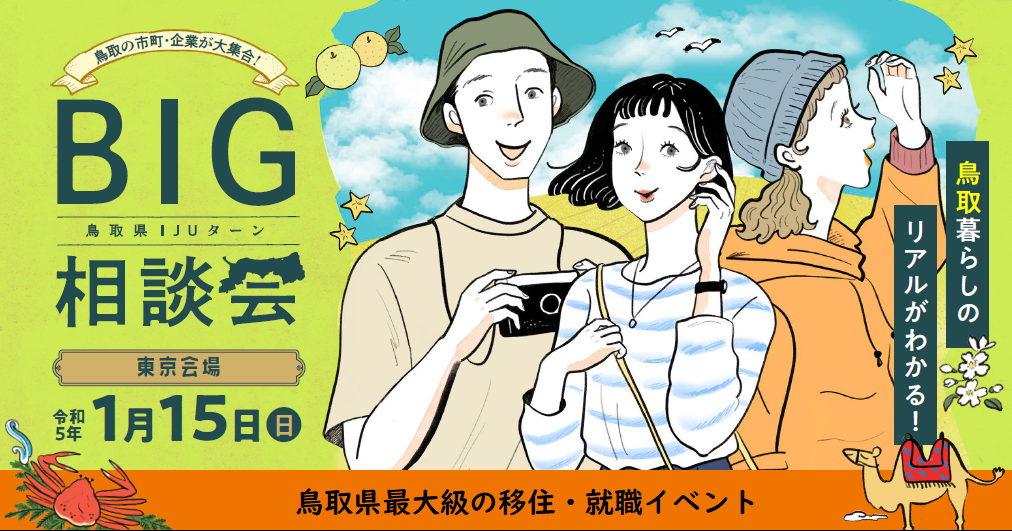 1月15日に東京交通会館にて鳥取県内の市町・企業等が一堂に集う最大級の移住・就職イベント『鳥取県IJUターンBIG相談会』を約3年ぶりに対面開催します!