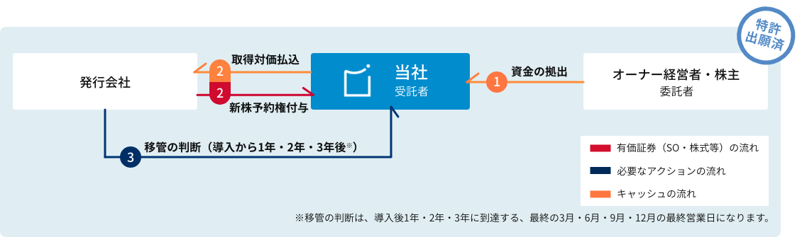 「凍結タイプ」及び「1円ストックオプション信託™」の導入における、委託者(オーナー経営者・株主等)、