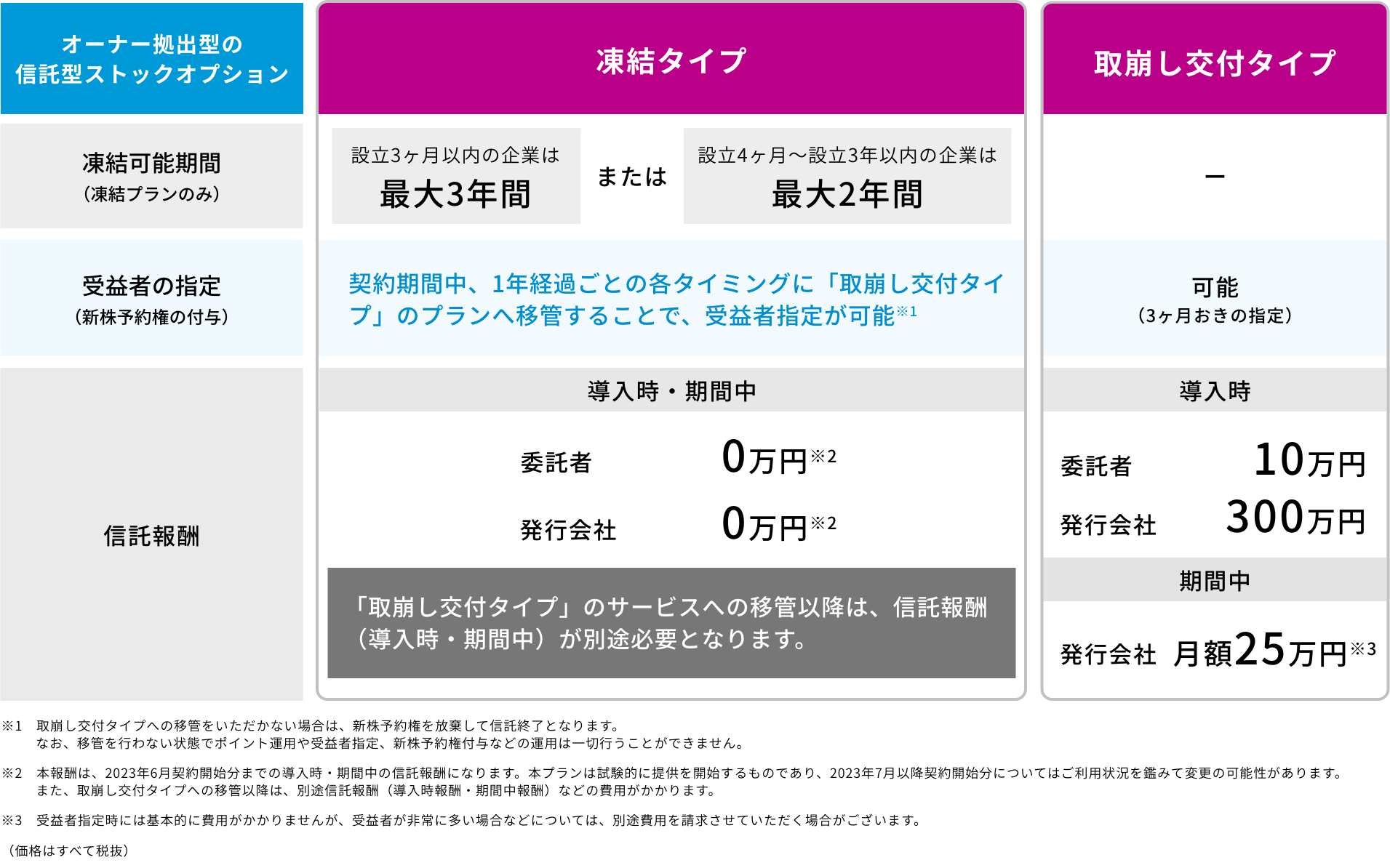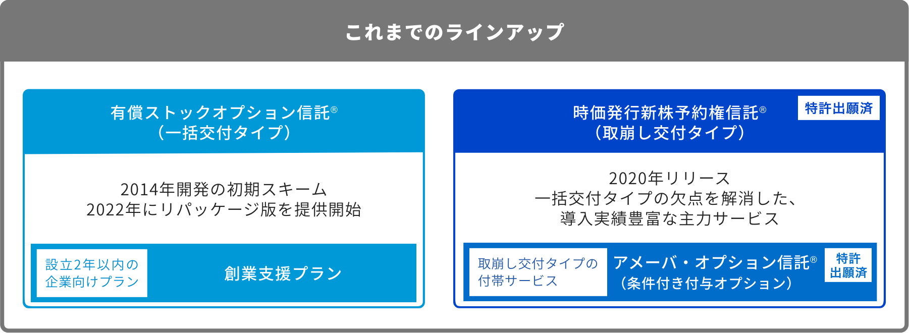 プ」をラインアップに加えました。「凍結タイプ」は、新株予約権の付与などの運用が可能な「取崩し交付タイ
