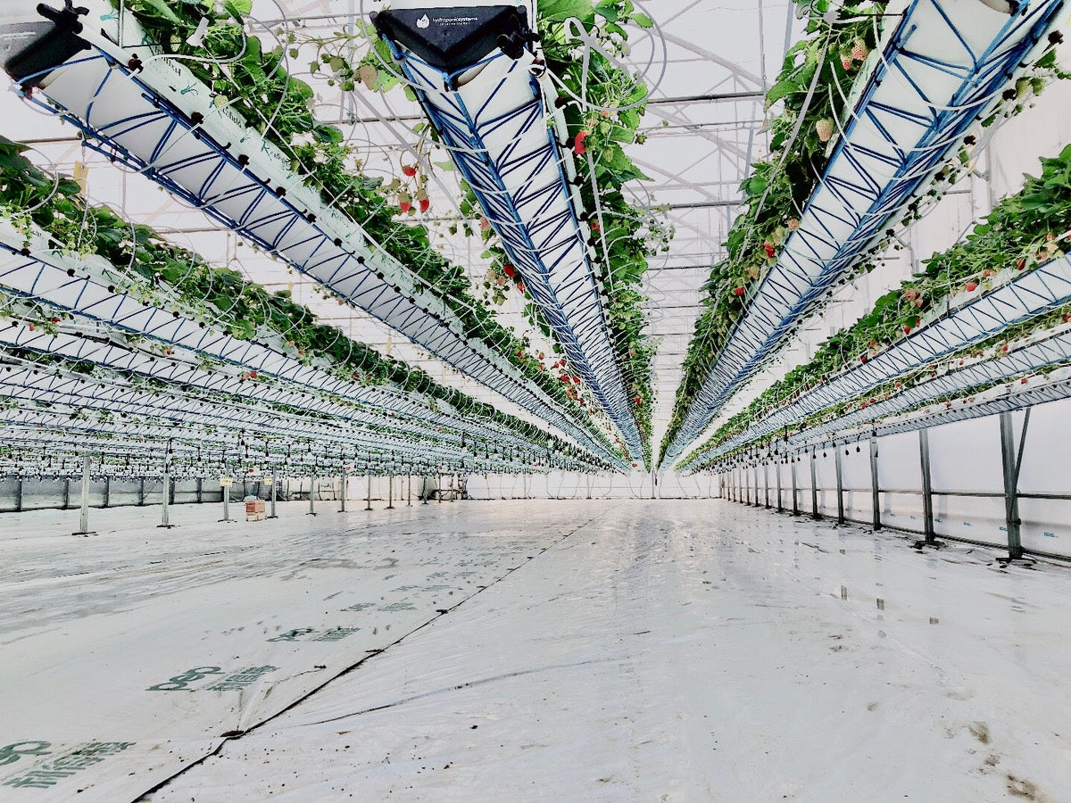 ●イチゴが上から降ってくる?!最新鋭のイチゴ狩り園
