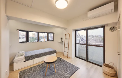 1993年に竣工した社員寮(東京都杉並区、延べ床面積:572.23㎡、規模・構造:地上5階建て・RC造、用途:寄宿舎)を丸井グループとツクルバの共創により一棟リノベーションした、ワークラウンジ付きリノベーション賃貸マンション