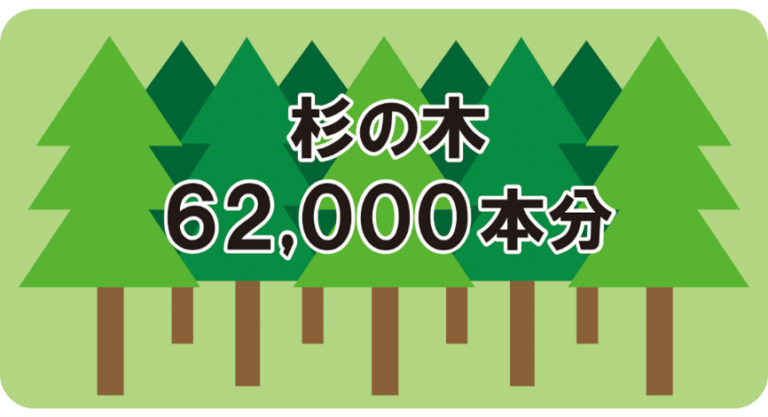 (※2)適切に手入れされている36~40年生のスギ人工林1ヘクタール(1,000本の立木)が1年間に吸収する二酸化炭素の量を約8.8トンと推定(林野庁試算)