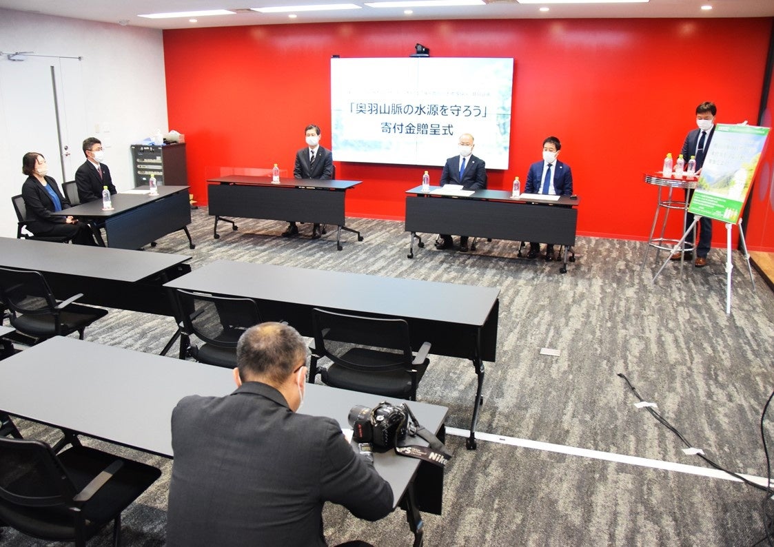 「このたびの寄付金が、豊沢ダム周辺や豊沢川流域にの、地域の貴重な財産である水源の保護に少しでもお役に立てれば幸いでございます。今後も地域に貢献できる企業として、私たちにできることを地道に、着実に実践してまいりたいと考えております。」