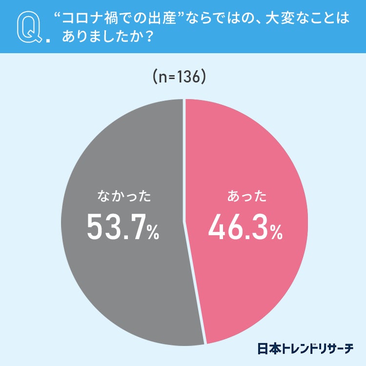 46.3%の方が、“コロナ禍での出産”ならではの大変なことが「あった」と回答しました。