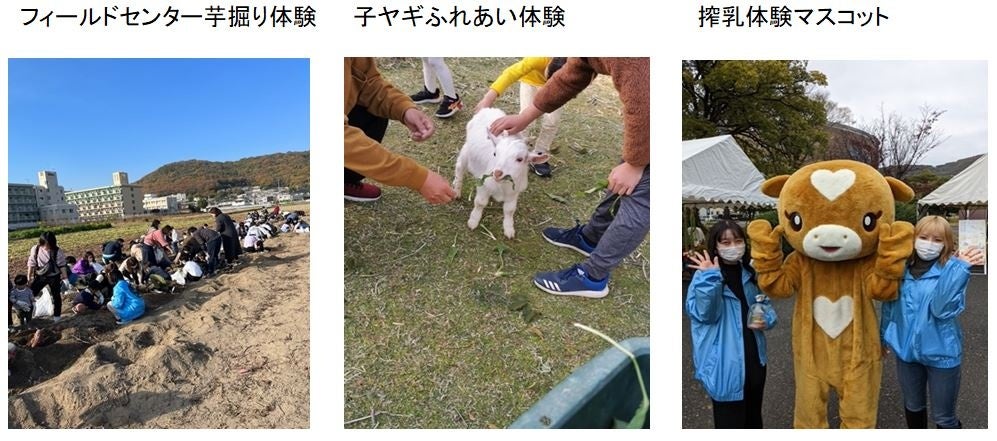 第46回を迎える収穫祭は、地域の方々との交流も目的としており、今年度は、収穫体験(サツマイモ掘り)、子ヤギとのふれ合い体験、疑似搾乳体験を開催しました。