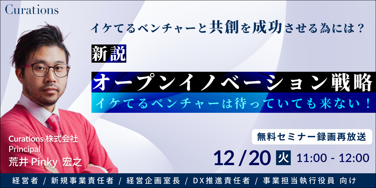 このウェビナーでは、オープンイノベーションの現状、その問題点を整理し、イケてるベンチャーと共創を成功させるための取り組みについて解説します。