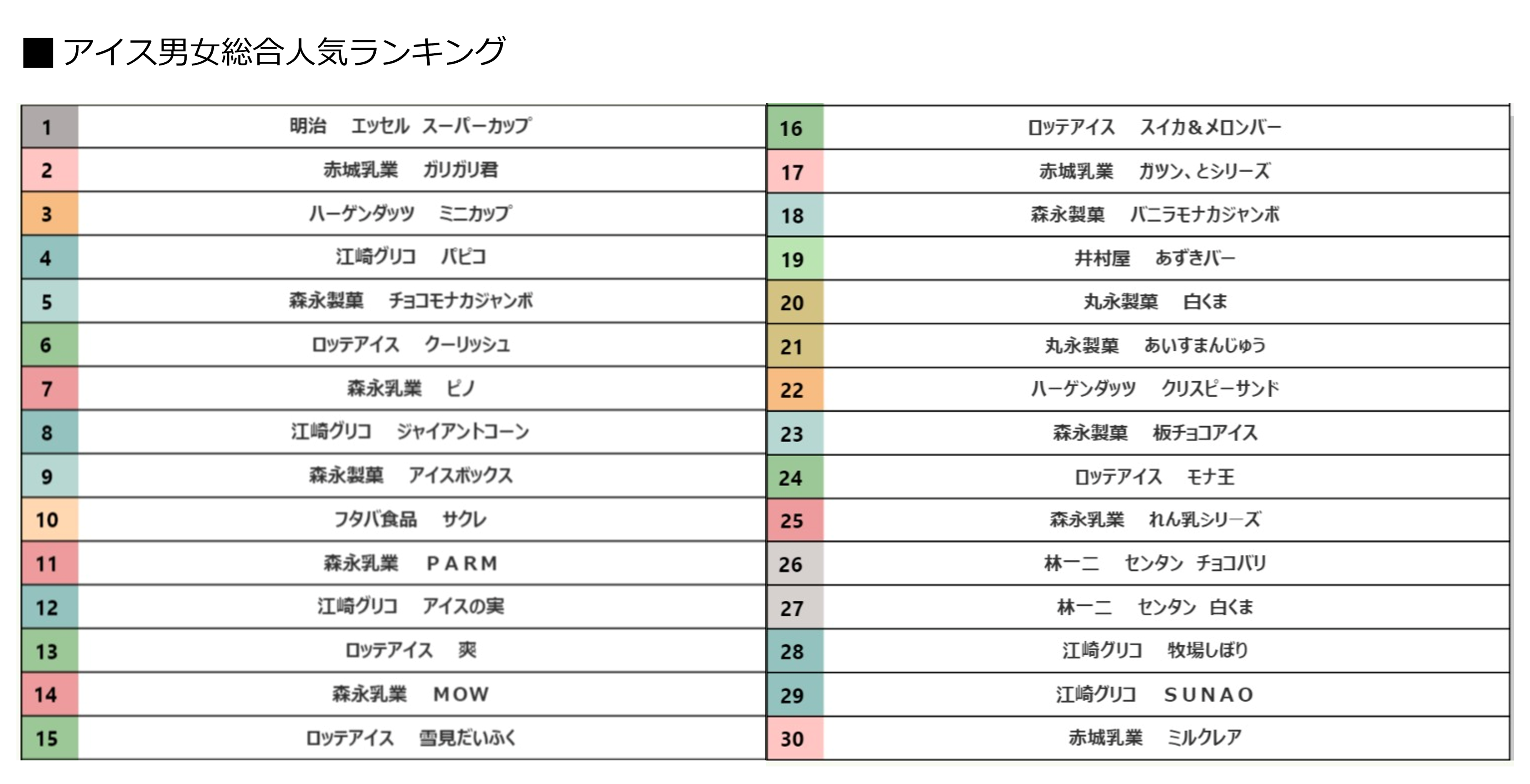 - 【男女総合・購買ランキング】アイスの総合ランキング(TOP30)
