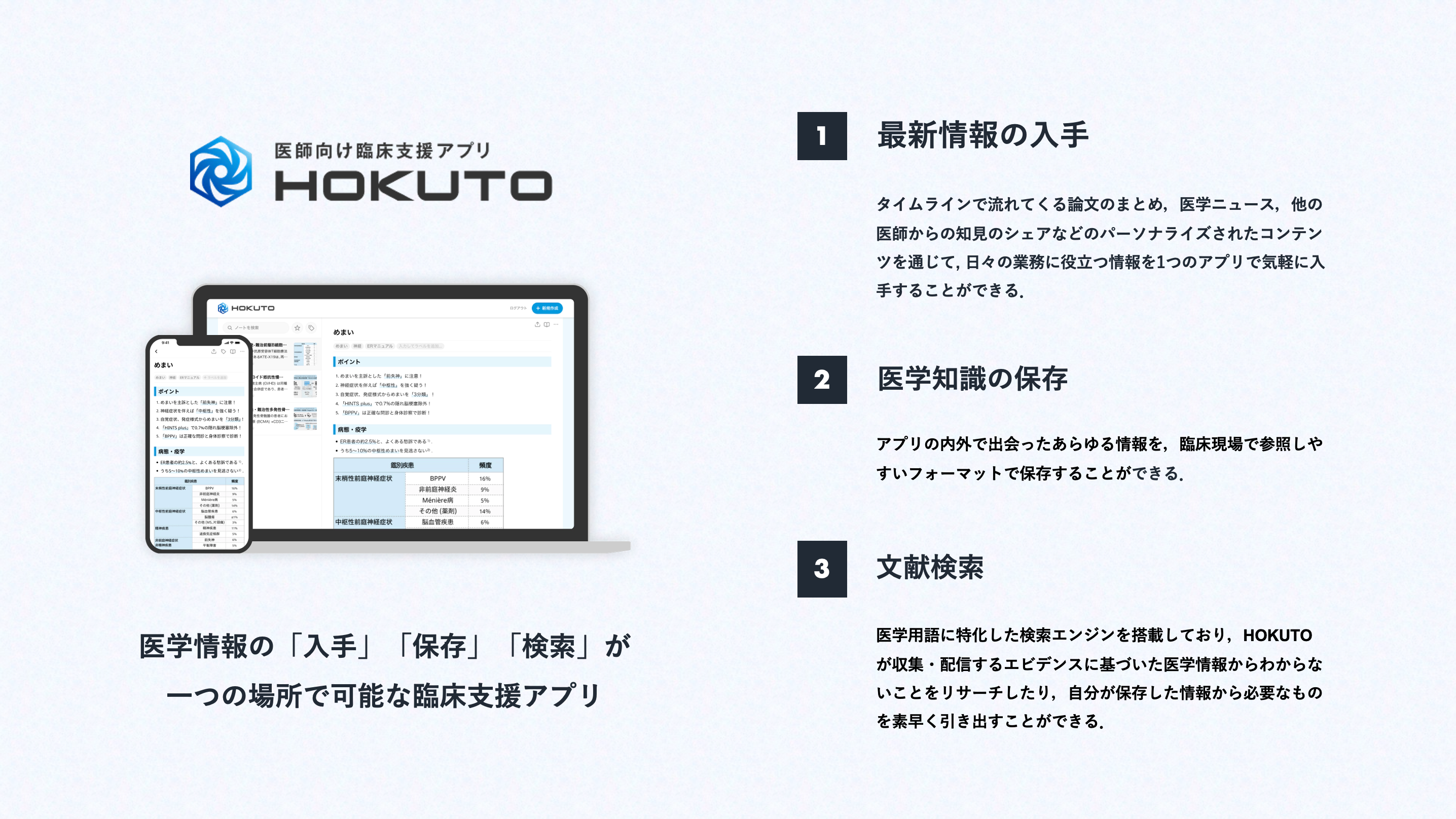 - 情報過多な医療現場を支える 医師向け臨床支援アプリ「HOKUTO」