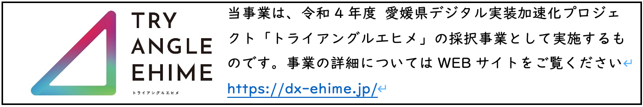 なお、本事業は、愛媛県デジタル実装加速化プロジェクト「トライアングルエヒメ」の採択事業として実施するものです。