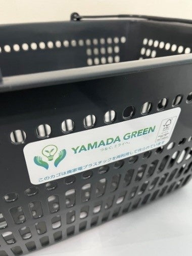 店舗から回収した使用済み家電製品の再生プラスチックを利用したお買い物カゴ。ヤマダデンキ店舗にて導入しています。