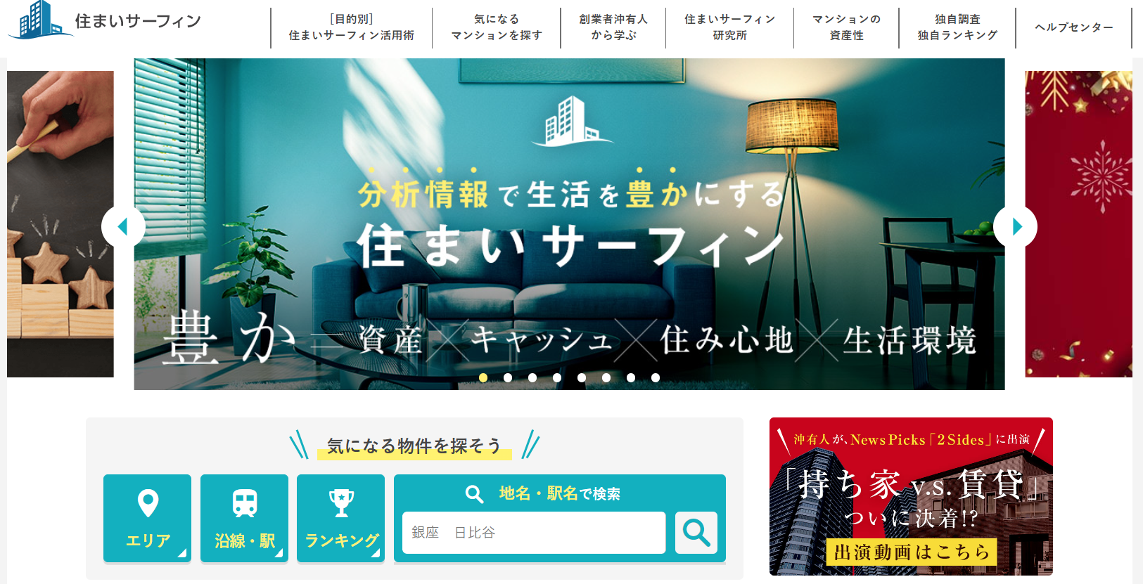 マンションの無料会員制セカンドオピニオンサイト。2004年より会員制に移行し、マンションの売買をする時に知りたい情報を”見える化”し、購入・売却検討者が知ることが難しかった不動産情報を得られる。マンションの査定価格・相場情報と会員の物件評価・デベロッパー評価などの豊富なコンテンツを持つ。