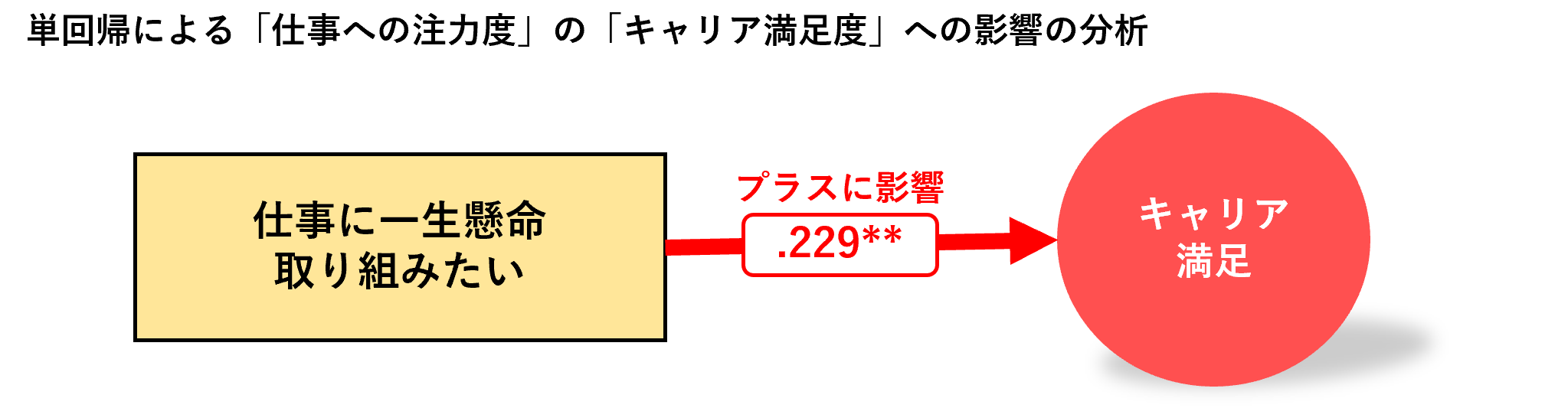 「仕事に一生懸命取り組みたい」ことが「これからのキャリアに期待が持てる」ことに影響するかを調べたところ、キャリア満足度同様に仕事に注力することがキャリア期待値にプラスに影響することがわかりました。
