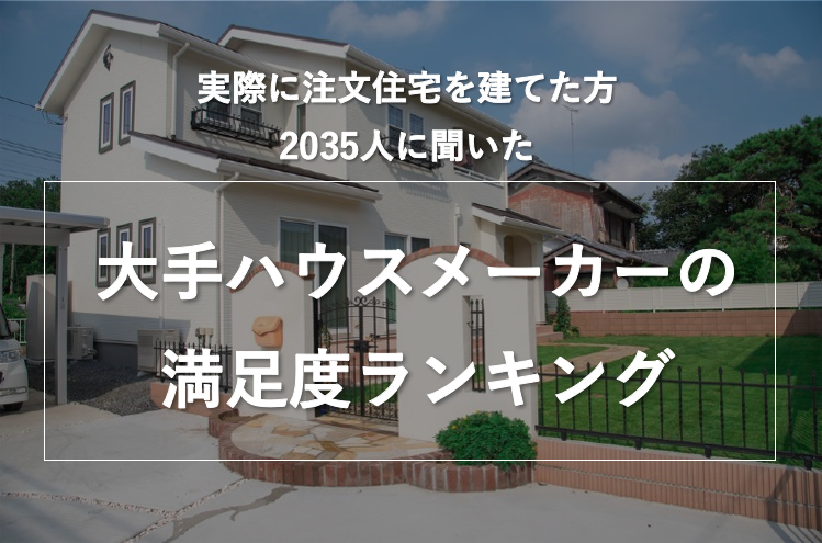 アンケートサイト「サーベロイド」にて、注文住宅を建てたことがある方12016人に「どこの注文住宅会社で家を建てたか」を質問し、大手ハウスメーカー18社に該当した2035人に、実際に建てた家の満足度を回答していただきました。
