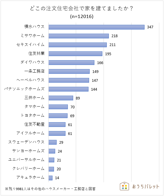 「どこの注文住宅会社で家を建てたか」を質問しました。