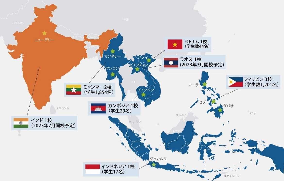 株式会社ONODERA USER RUNは2016年11月に設立。東南アジア5か国(ミャンマー、カンボジア、フィリピン、ベトナム、インドネシア)における人財教育と、特定技能に特化した日本国内への人財紹介事業を展開*3。学生数は3,134名を数え、これまで特定技能の合格者を2,065名輩出し、1,544名が内定、601名が紹介先での就業を順次開始しております*4。2023年3月から海外6カ国目となるラオスでの事業を開始し、2023年7月からは海外7カ国目となるインドへ進出をいたします。日本語・特定技能教育から人材紹介、就業後の生活や資格取得の支援までをワンストップで行うことにより、安定して長く働ける人財をご紹介しております。