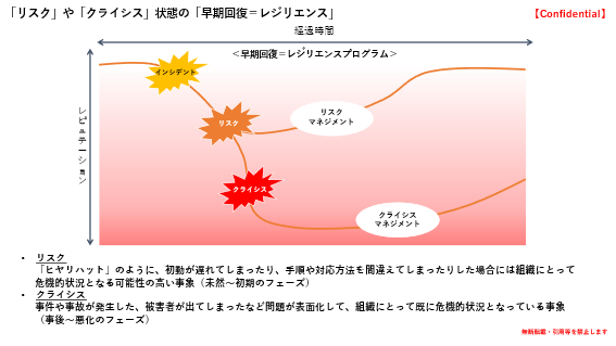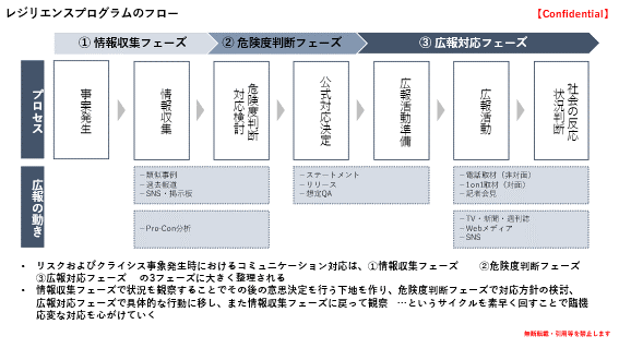 そこで当社ヘルスケア本部は、高まるニーズに応じるべく、数多くの危機管理案件に従事してきた経験を活かす「危機管理コンサルティングチーム」を発足させ、クライアント内における体制整備やリテラシーの向上、リスク・クライシス発生時の対応方針策定からコミュニケーション活動のサポートまで一気通貫して取り組む「危機管理レジリエンスプログラム」を提供する運びとなりました。