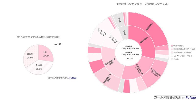 - 約72%が複数の“推し”を持っており、“推し”は多ジャンルにまたがりを見せている。