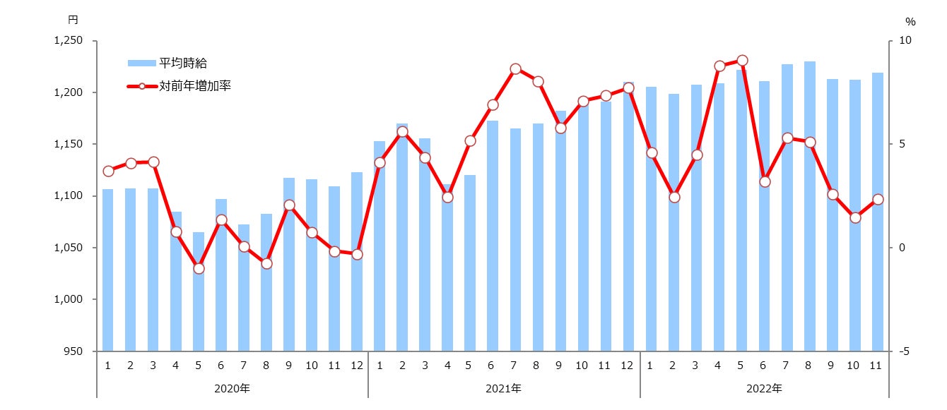 1.職種別平均時給(2022年11月)