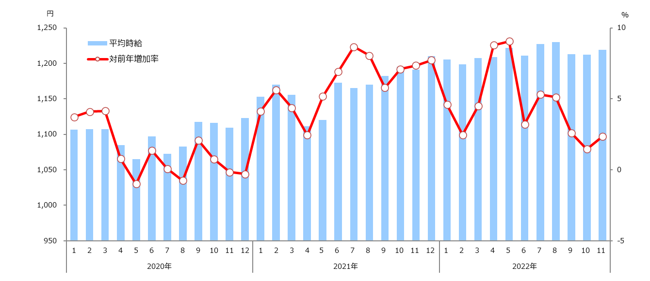 1.職種別平均時給(2022年11月)