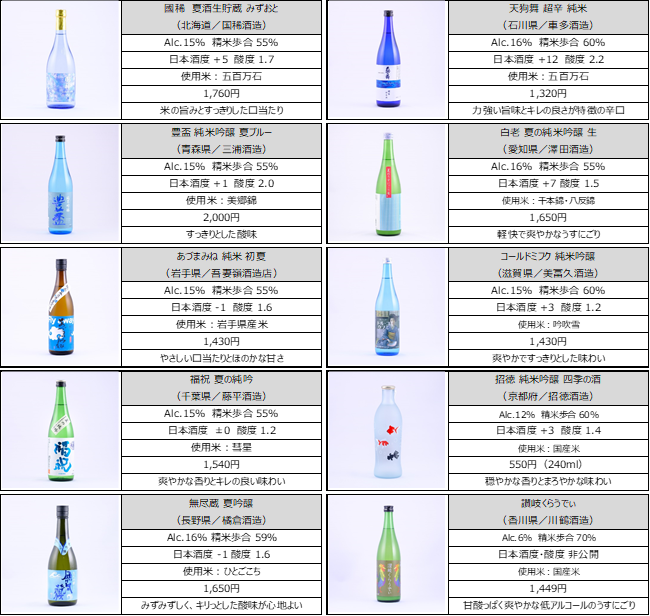 この度、情報館では、『夏酒(なつざけ)』をテーマにした日本酒のラインアップをご提案しています。