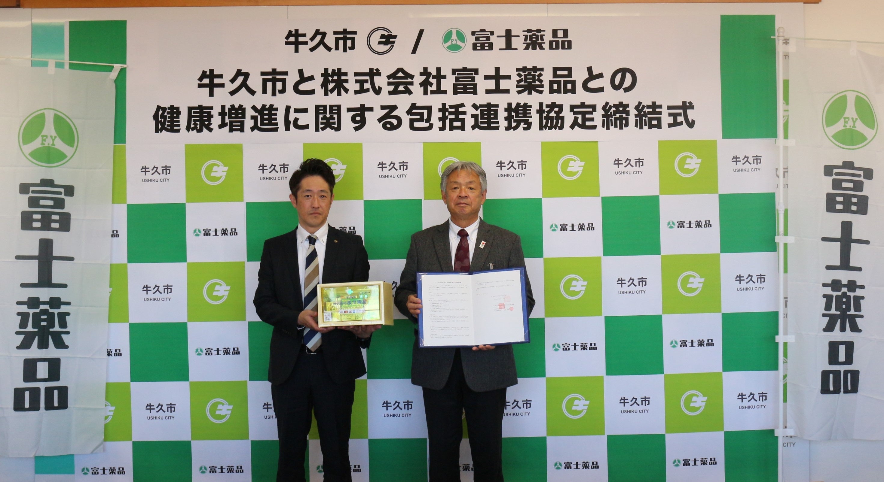 この度、富士薬品は、牛久市の地域住民の「健康づくり」の取り組みにおいて、セルフメディケーションならびに防災の側面から支援できると考え、包括連携協定の締結に至りました。