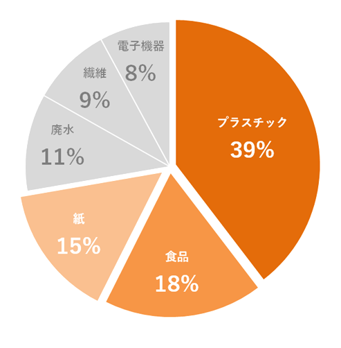 プラスチックが最も高く39%の関心を集めています。2022年4月には「プラスチック資源循環促進法」が施行され、企業へのプレッシャーの高まりが表れています。次いで、食品が18%、紙が15%を占め、プラスチック利用の規制強化を契機に、事業活動の中で捨てている物を見直し始めている企業もあると伺えます。まだ規制されていない品目でも、今後ペナルティが課されることを想定して再資源化できるように準備しておくことは、実際に施行された時に大きな差となることが予想されます。