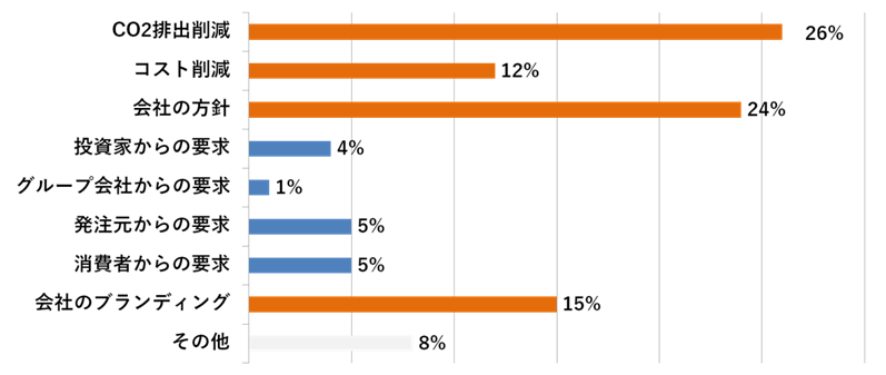 また、「コスト削減」のための検討は12%と高くはありませんが、再資源化によりこれまでコストを掛けて捨てていたものでも有価物として買い取りできる場合があります。再資源化がコスト削減にも繋がると理解いただくことで、施策を検討する企業は増えると期待できます。