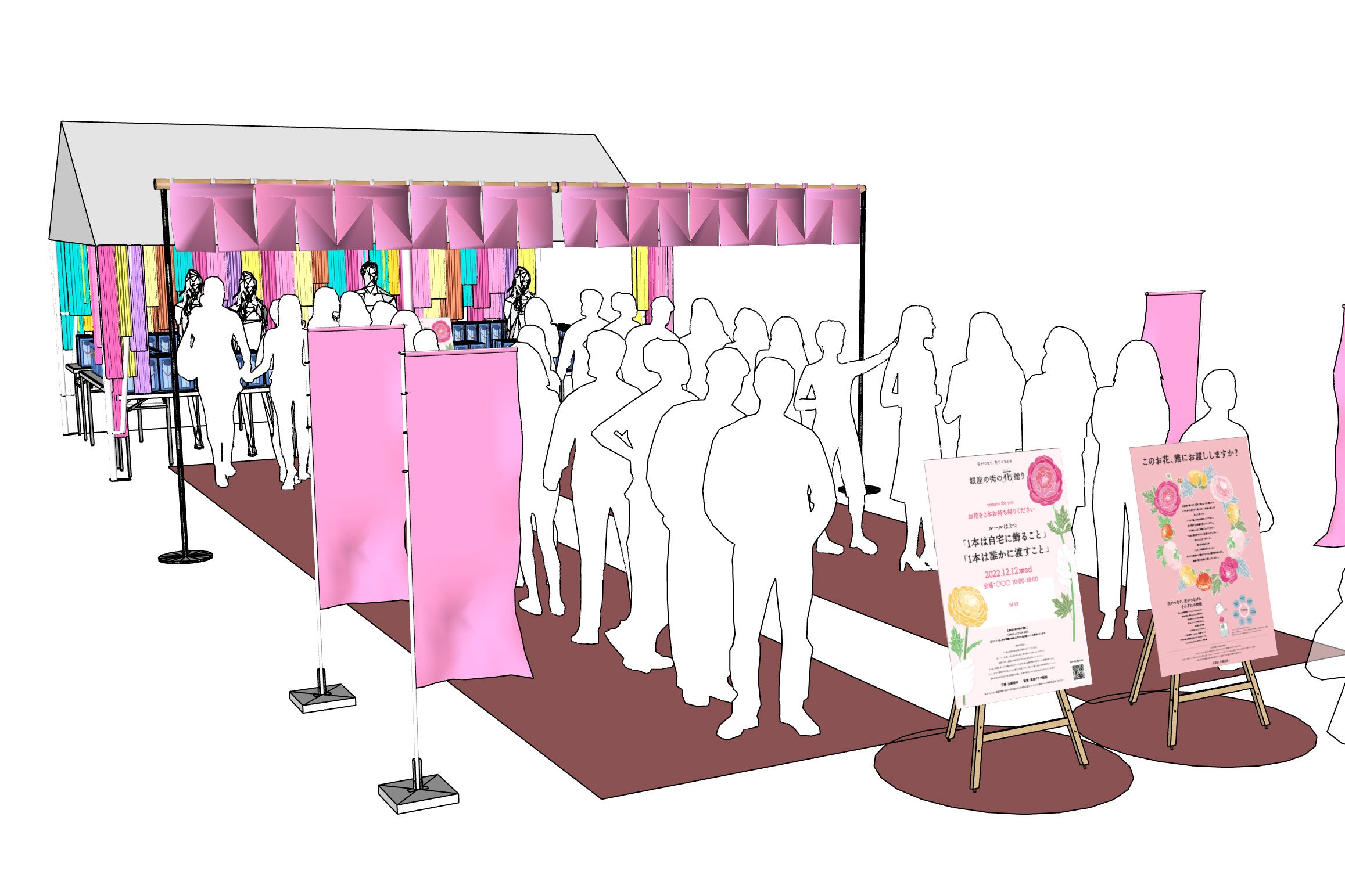また、銀座はその歴史のなかで多くの人と人との出会いを創出してきた街です。そして、お花を受け取り・渡すという行動はリアルでしかできないこと。このイベントを通じて、コロナ禍で希薄になってしまったリアルなコミュニケーションの楽しさ・大切さをお伝えし、人と人が実際に会うことで様々なドラマを生み出してきた街「銀座」の魅力を再発信していきます。