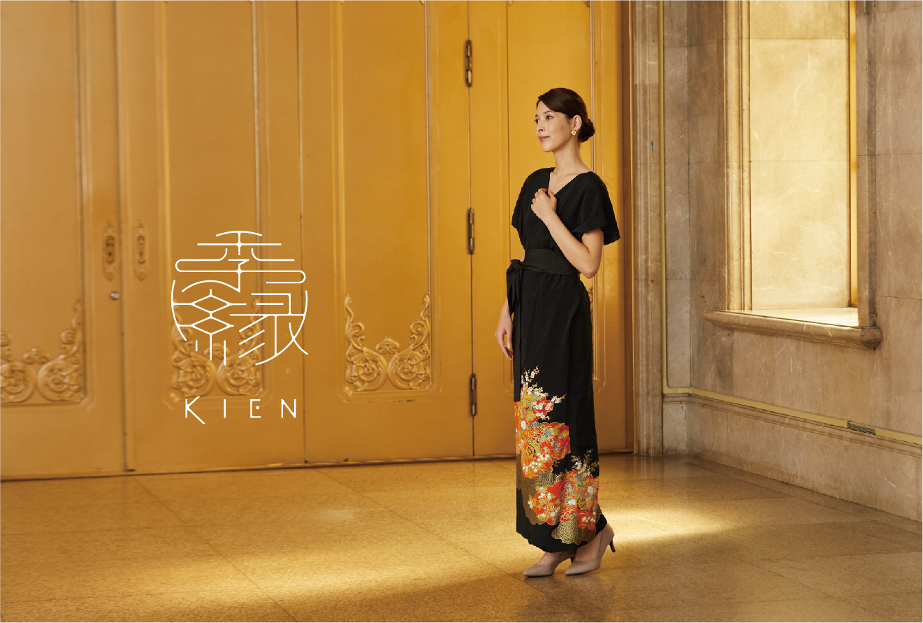 「季縁-KIEN-」は、お客さまが所有するきものや、季縁がセレクトした状態がよく、美しい柄のヴィンテージきものを、オートクチュールドレスやワンピースなどにアップサイクルすることで、現代の⾐⽣活にフィットする新しいきものの楽しみ⽅をご提案するきものアップサイクルブランドです。